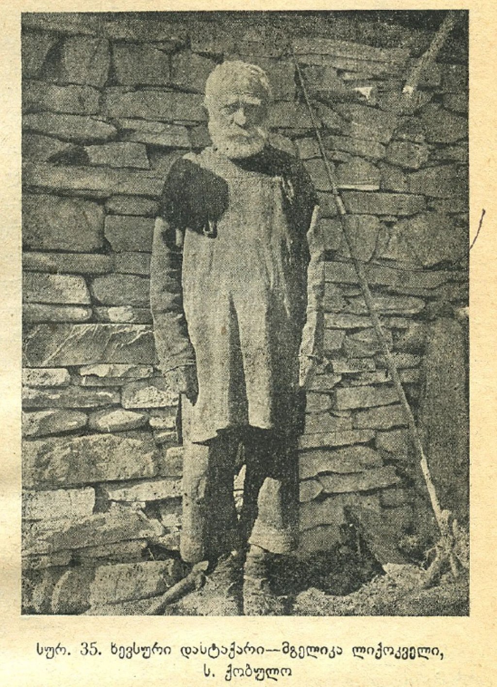 “ლიქოკელი იყო 97 წლის მოხუცი… ჭრილობის შეხვევისას იგი მუშაობდა, როგორც კარგად ნაწვრთი ხელოვანი… მისთვის ნაცნობი იყო ყოველი ნაკეცი ტვინისა… ვხედავდი მოხუცს, რომელსაც ჰქონდა ცოდნა ყოველგვარი ჭრილობისა და რომელიც იყო დახელოვნებული მკურნალობაში. საითგან?… ჩემი რწმენა, რომ ხევსურები დანაშთია რომელიღაც კულტუროსანი ხალხისა, აქ ნათლივ მტკიცდებოდა, სხვა ახსნა შეუძლებელი იყო/ თვალს ვერ ვაცილებდი ამ ჯადოსანს, რომელიც იდგა ჩემს წინ ვითარ ლანდი პრეისტორიული ხანიდან. მას ჰქონდა ცოდნა, რომელიც საუკუნეებს ვერ წაეშალა…” - წერდა გრიგოლ რობაქიძე თავის რომანში "ენგადი".