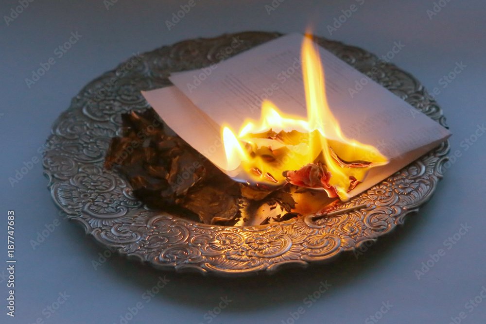 ანთებული შეკვრა დადე ლანგარზე და აცადე მთლიანად დაიწვას.